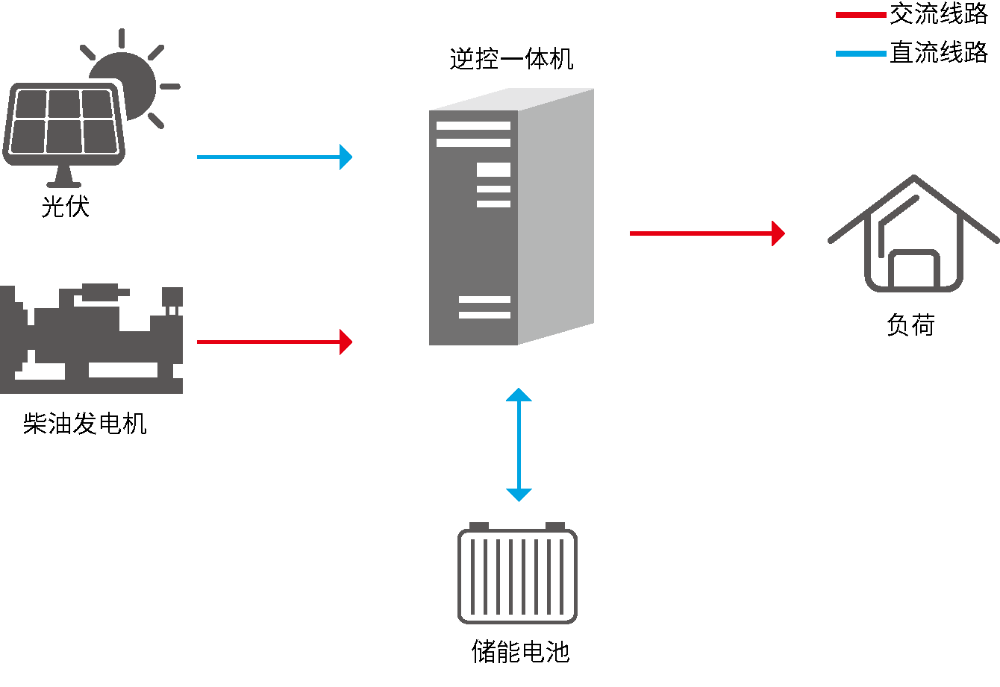 海岛型独立微网是在单独区域内部建立“发-输-配-用-储”一体化完整系统,利用风力发电、光伏发电等可再生能源,配合柴油发电机多能互补,共同为独立的区域提供所需基本能源。